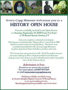 You are cordially invited to an Open House on Sunday, September 14, 2025 from 4 to 6 pm at 35 Broad Street, Groton, CT